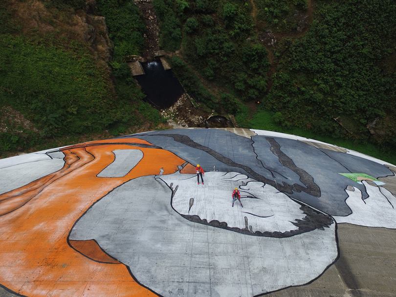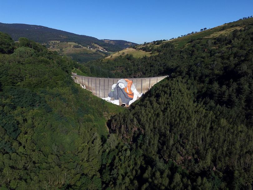 The French duo graffiti artists Ella & Pitr is known for the size of their works. The Duo's most recent graphite is called Le Naufrage de Bienvenu , or "The Shipwreck of the Well-Vindos." It was made 47 meters high in a dam on the river Gier, and required ten days of work.